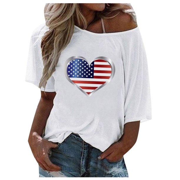 Toyfunny Toyfunny Women Plus Size Flag Print Loose 4th Of July One Shoulder T Shirt Tops Blouse Walmart Com Walmart Com